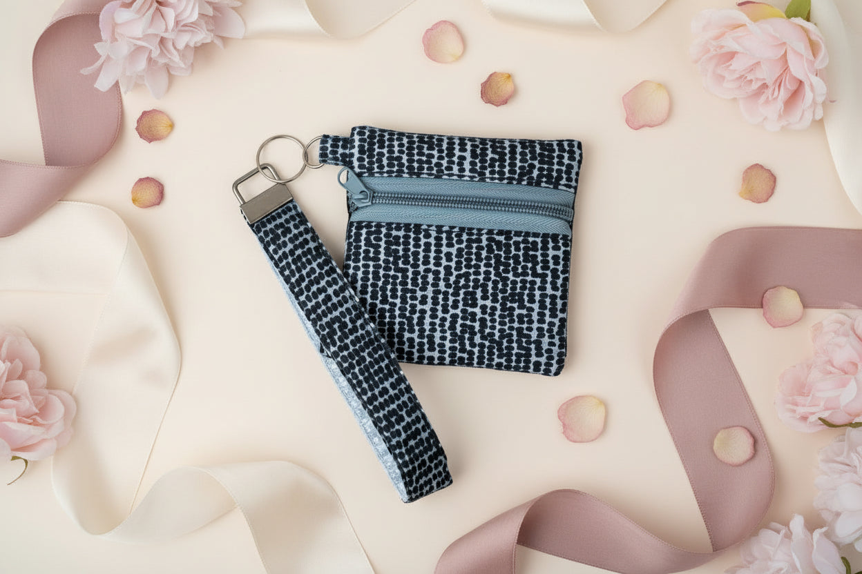 Behold The Tobie, a most splendid handcrafted cotton change purse designed for those who appreciate both utility and refinement. This charming accessory securely contains one's coins, banknotes, keys, and treasured trifles, whilst its ingenious detachable key fob permits the separation of one's keys from one's purse with graceful convenience.