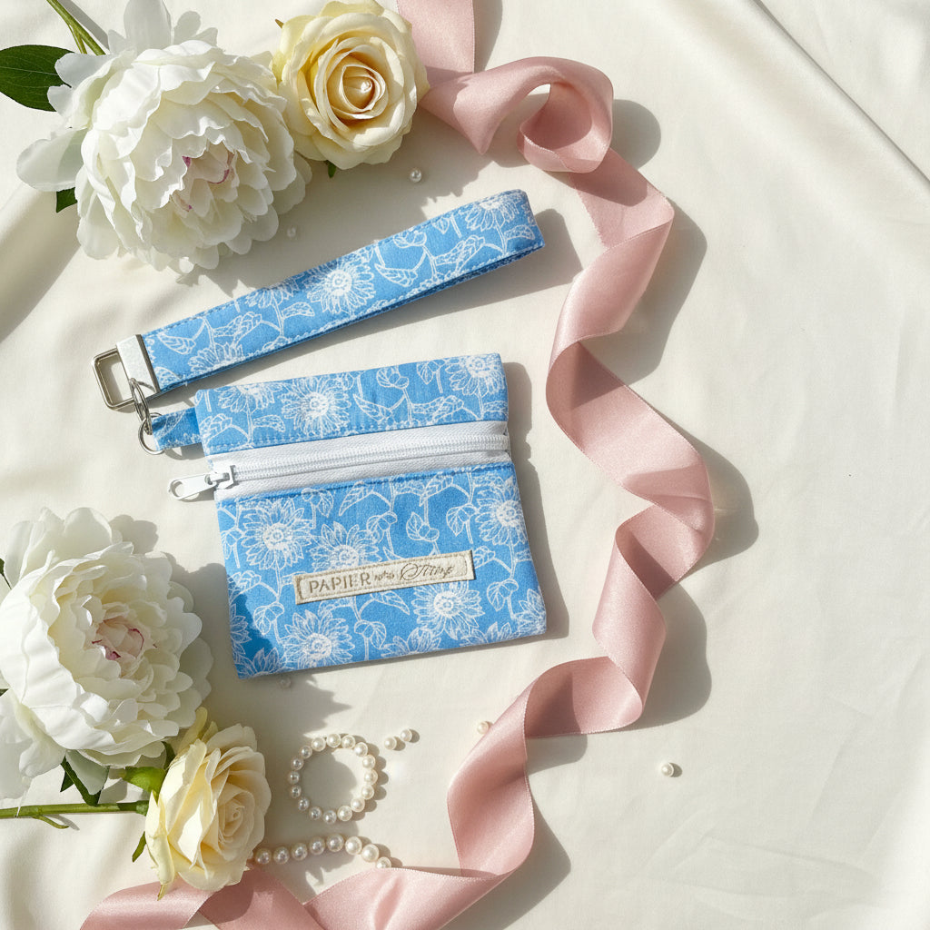 Behold The Cora, a handcrafted cotton change purse designed for those who appreciate both utility and refinement. This charming accessory securely contains one's coins, banknotes, keys, and treasured trifles, whilst its ingenious detachable key fob permits the separation of one's keys from one's purse with graceful convenience.